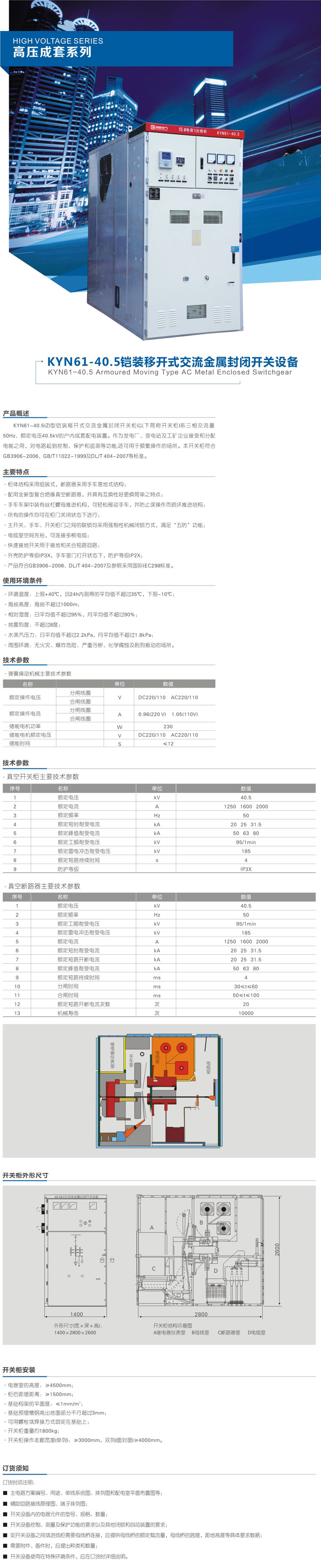 KYN61-40.5铠装移开式交流金属封闭开关设备