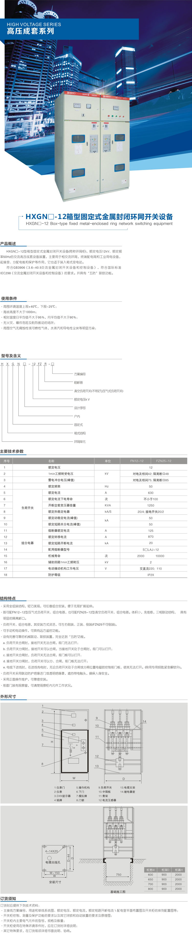 HXGN-12箱型固定式金属封闭环网开关设备