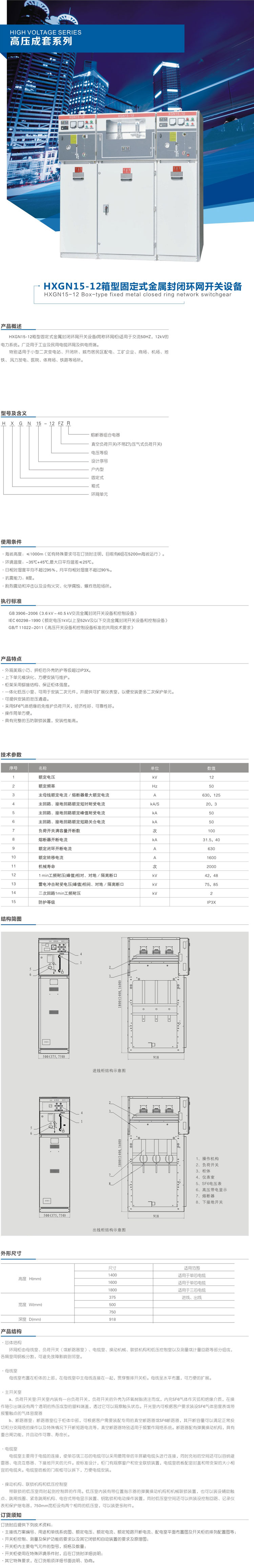 HXGN15-12箱型固定式金属封闭环网开关设备